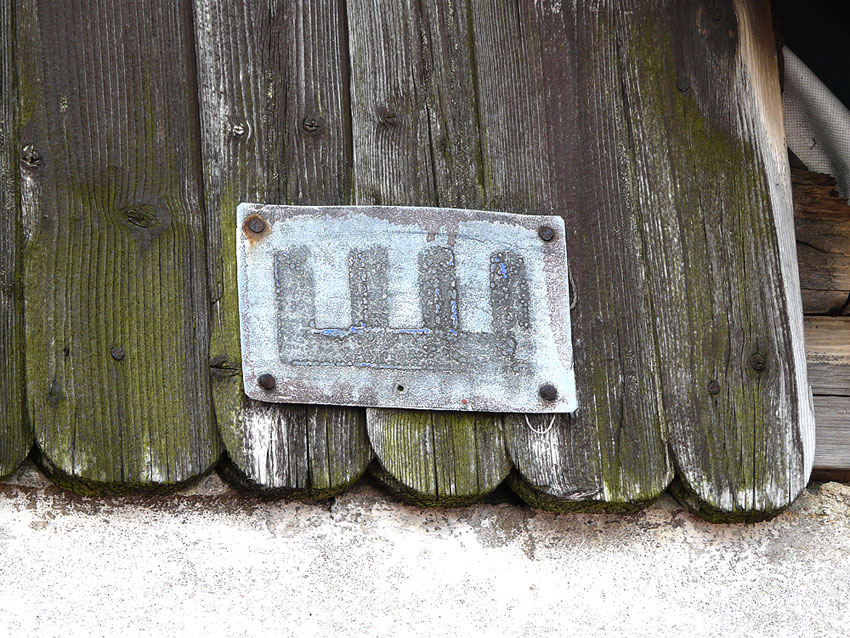 © Kammwegmarke (Blechversion von 1904/05) an einem Hausgiebel in Heinrichsdorf (2011).